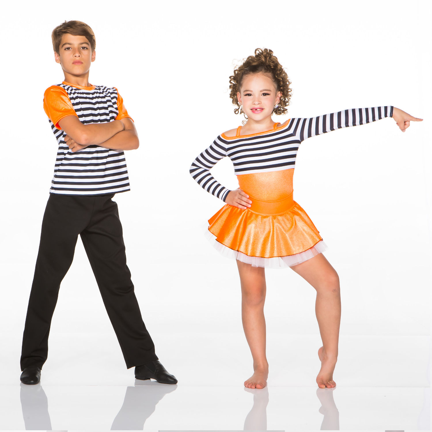 GIRL: Off shoulder colour blocked bodysuit and skirt with a pop of crinoline. Scrunchie included.
